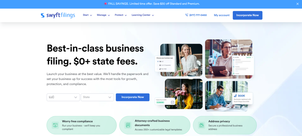 Swyft Filings is an online business formation service with a reputation for fast document processing and responsive customer support, making it a popular option for new entrepreneurs. The company markets itself as a suitable and accessible service for small businesses forming an LLC in Delaware.
