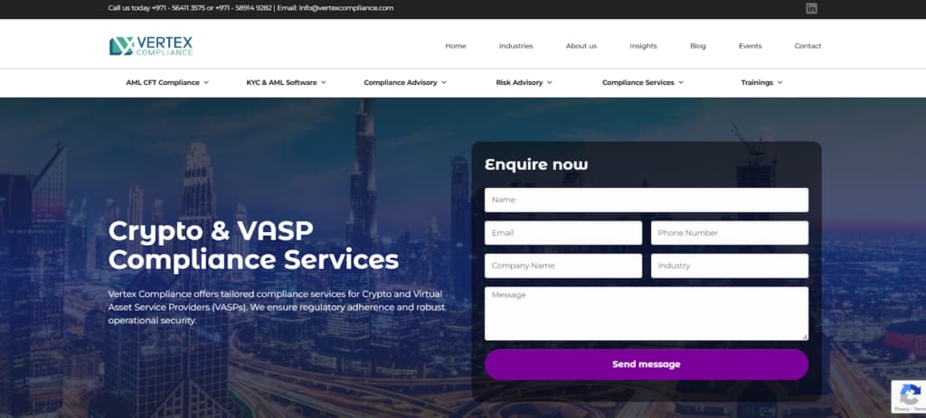 Vertex Compliance provides specialized compliance services for Crypto and Virtual Asset Service Provider (VASP) entities. The company focuses on ensuring regulatory adherence and implementing robust operational security frameworks.